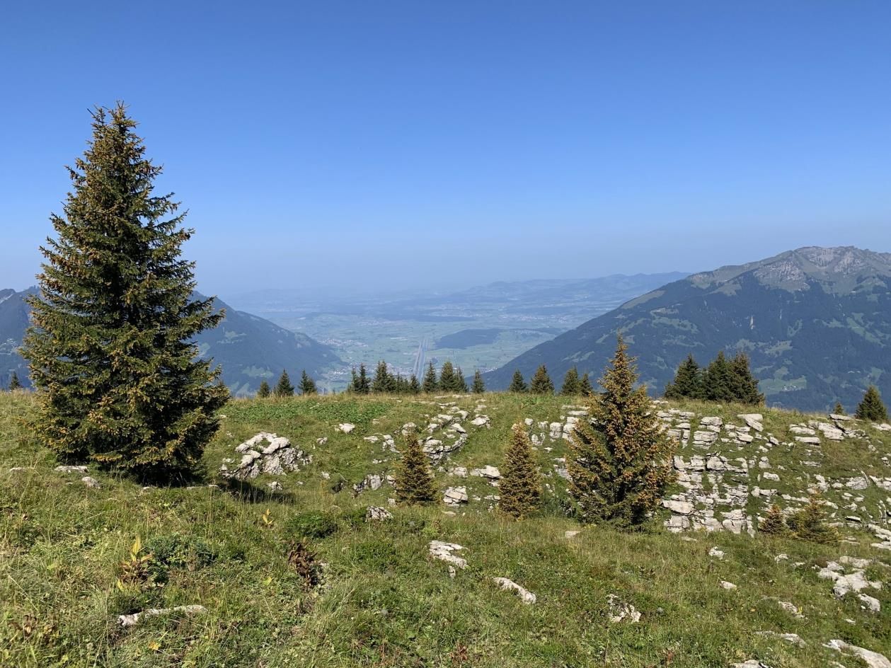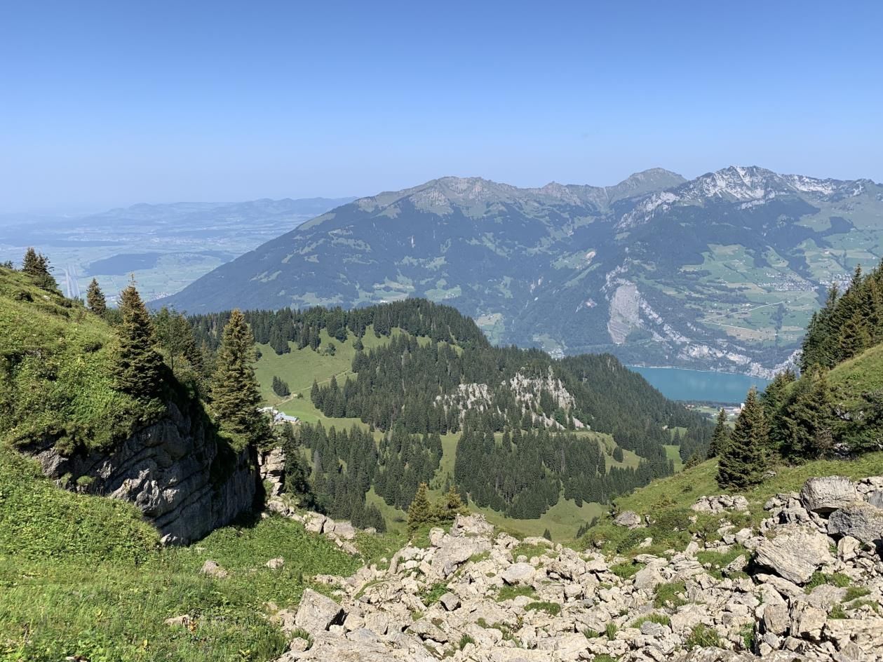 Auf dem Rückweg ging es über die 2-Seen-Wanderung, vorbei am blaugrünen Viltersersee und via Heidiweg und Obersäss zurück nach Pardiel, mit prächtiger Weitsicht über das Rheintal bis zum Bodensee und auf die Ostschweizer und Bündner Bergwelt.