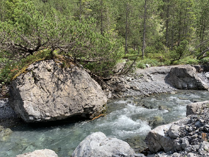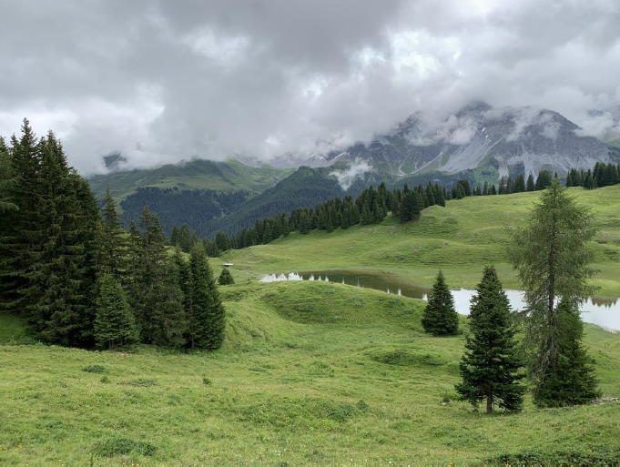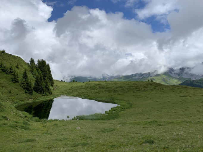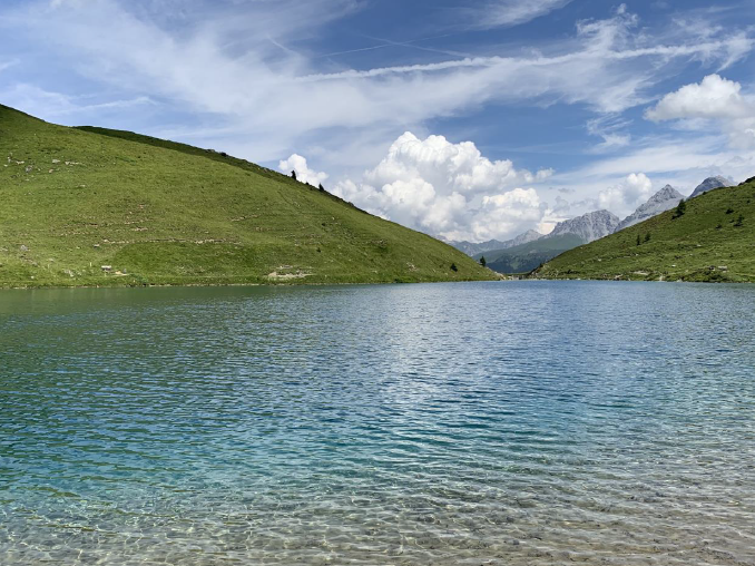 Am letzten Tag begann und endete die Zwei-Seen-Wanderung bei der Hörnli Talstation und führte zu den kristallklaren Bergseen südwestlich von Innerarosa. Der Älplisee liegt auf 2155 Metern auf dem Aroser Älpli. Der See ist eingebettet im Quellbereich der Plessur, zwischen dem Schwellisee, den Bergen Erzhorn, Aroser Rothorn sowie Älplihorn. Der Schwellisee ist etwas tiefer auf der Aroser Alp an der jungen Plessur. Die Arvenstämme im See sind noch Zeugen des ausgedehnten Arvenwaldes, der einst weit über den Schwellisee hinauf reichte.