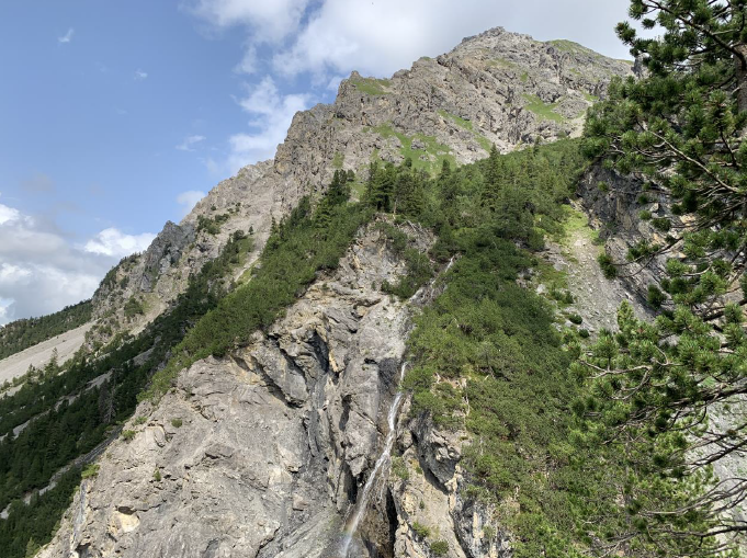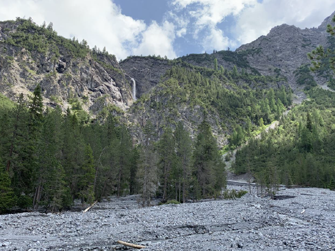 Vom Hotel Alpensonne ging es zuerst bergab und durch den Wald am Welschtobelbach entlang. Nun folgte ein etwas steiler Aufstieg bis zu den eindrücklichen Alteiner Wasserfällen am Schiesshorn, eine der schönsten Hausberge von Arosa.