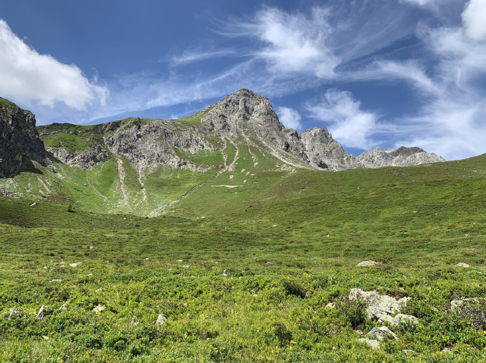 Der Ausgangspunkt dieser Wanderung war die Mittelstation der Luftseilbahn Arosa-Weisshorn. Von hier führte der Pfad durch eine blumenreiche Wiesen- und Mooslandschaft stetig bergauf mit weitreichenden Ausblicken über das gesamte Wander- und Skigebiet sowie ins Tal Schanfigg. Ab der Sattelhütte führte der letzte Stich zum Gipfel meist durch steiniges Gelände. Auf dem 2655 Meter hohen Weisshorn gab es ein atemberaubendes 360° Bergpanorama. Nach dem Picknick aus dem Rucksack kehrte man im Gipfelrestaurant mit der höchsten Kleinbäckerei Europas ein. Mit ähnlichem Charakter gab es einen steilen Abstieg bis zur Carmennahütte. Nun führte der Weg über Wiesen zurück ins Tal nach Innerarosa, wo man sich im Ausflugsrestaurant Alpenblick erfrischen konnte.