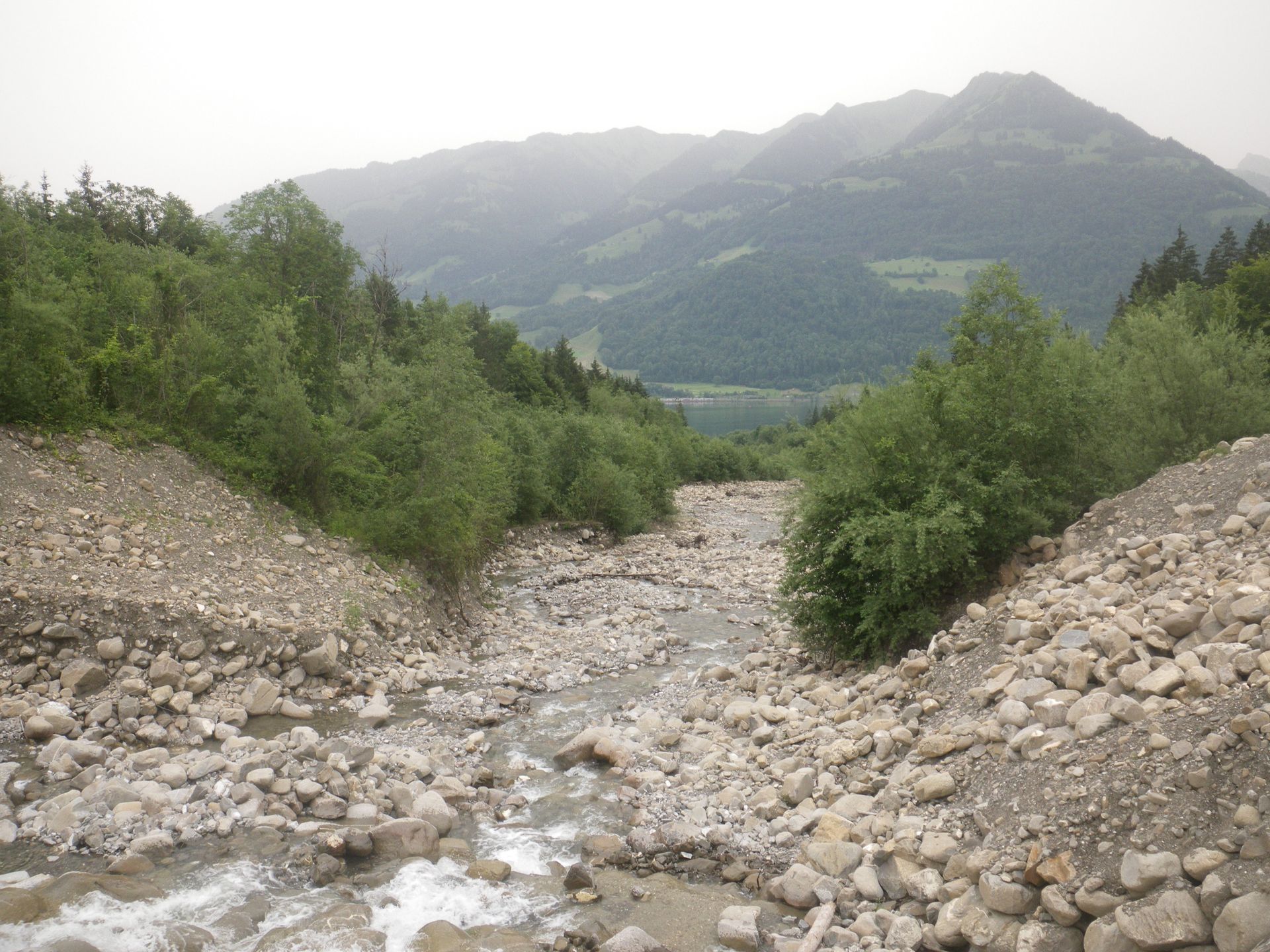 Der Abstieg zum Sarnersee führte durch das Naturschutzgebiet Usser Allmend-Schwerbachried, das von der breiten Schneise des Steinibachs durchfurcht wird. Im Restaurant beim Campingplatz konnte man sich mit einem Getränk erfrischen und im Sarnersee schwimmen. Nun verlief der Weg zunächst dem Strässchen entlang und später auf einem schönen Kiesweg. Am Dreiwässerkanal entlang erreichte man praktisch direkt den Bahnhof in Giswil, wo es mit der Bahn via Luzern und Zug zurück ins Knonaueramt ging.
