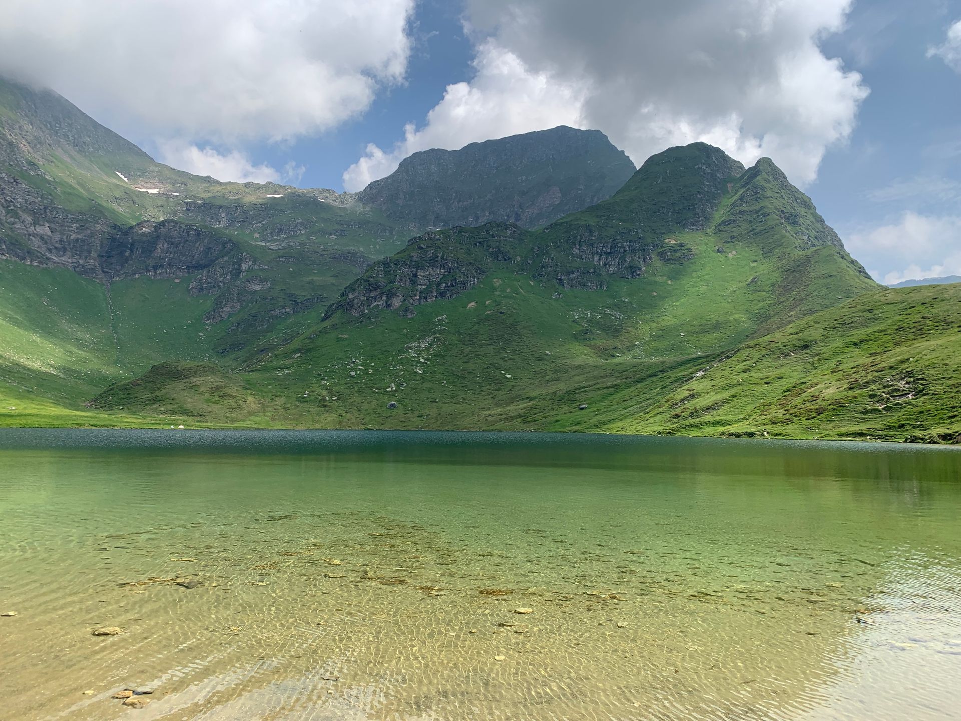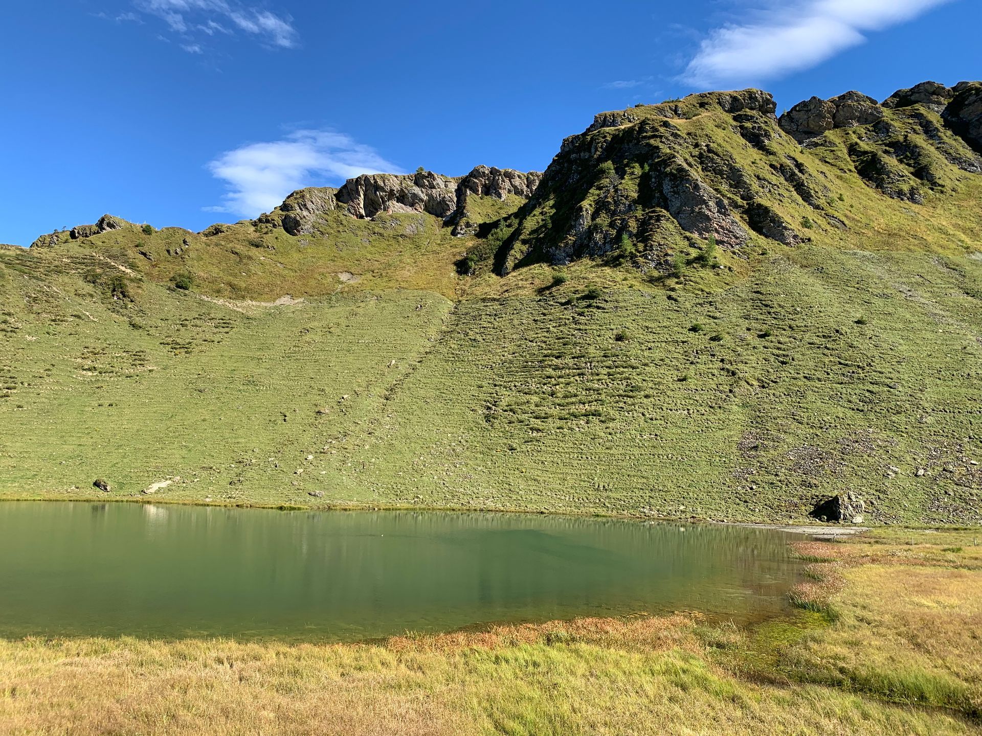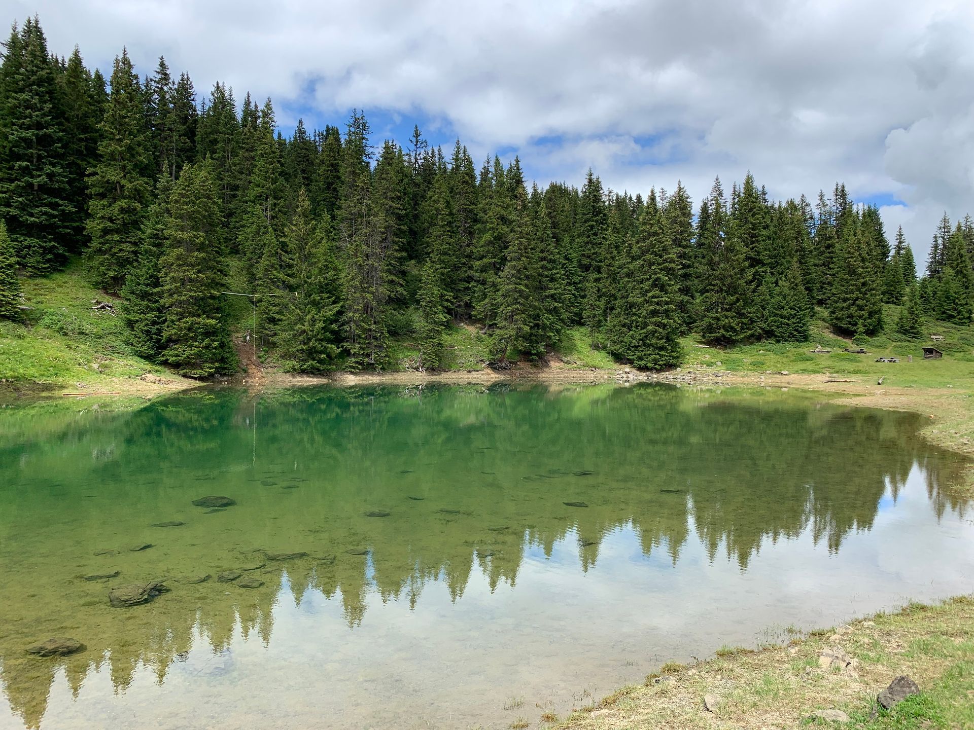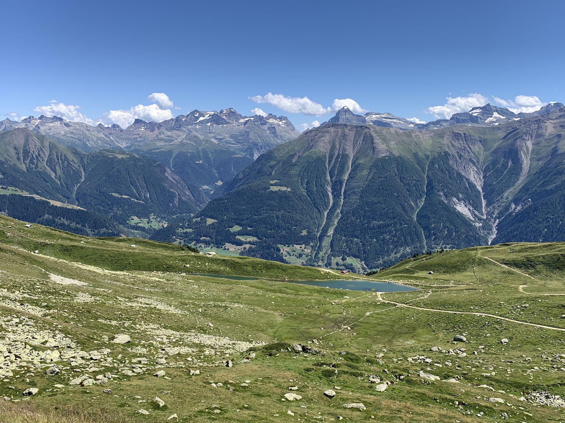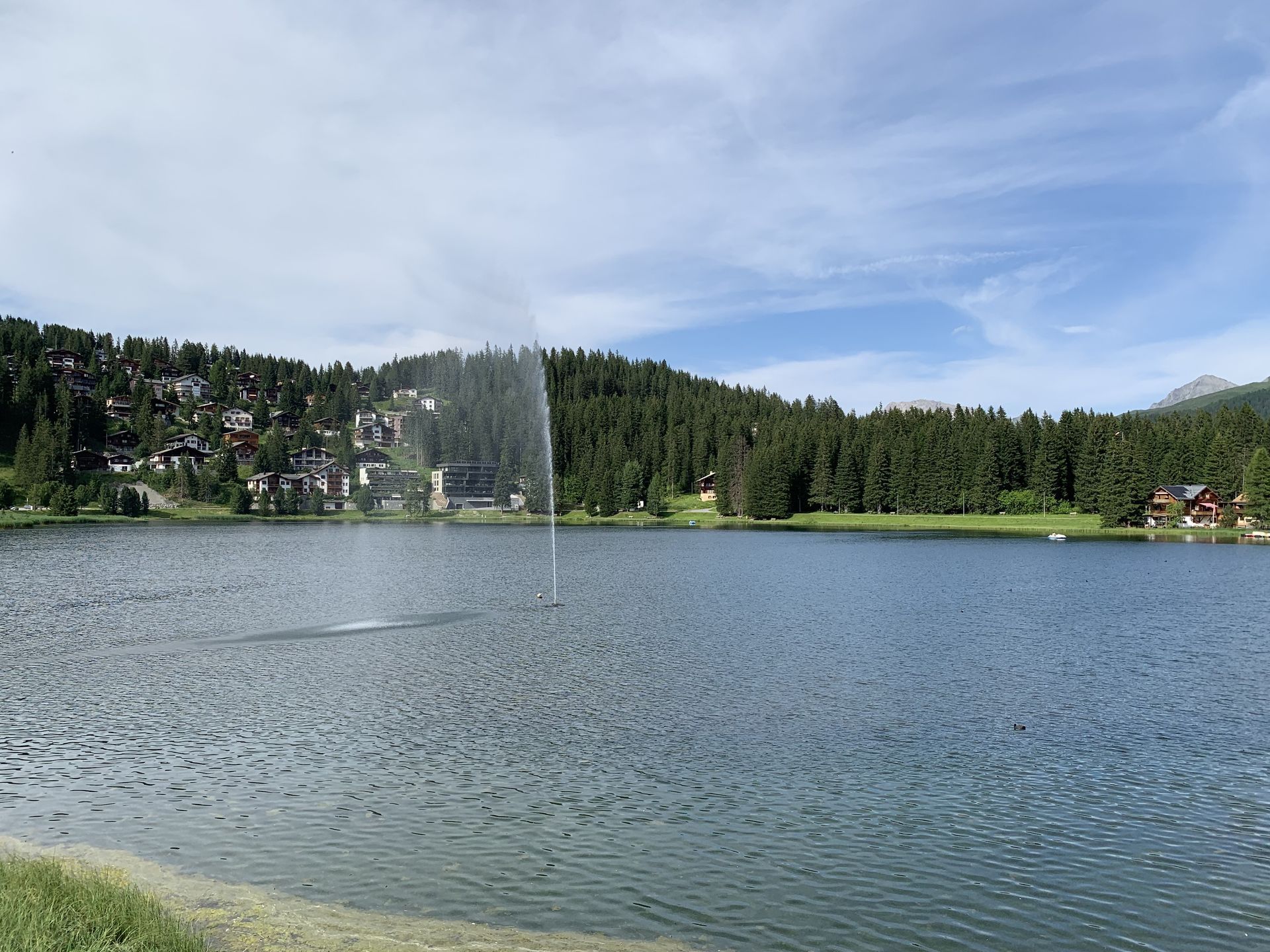 Am letzten Tag begann und endete die Zwei-Seen-Wanderung bei der Hörnli Talstation und führte zu den kristallklaren Bergseen südwestlich von Innerarosa. Der Älplisee liegt auf 2155 Metern auf dem Aroser Älpli. Der See ist eingebettet im Quellbereich der Plessur, zwischen dem Schwellisee, den Bergen Erzhorn, Aroser Rothorn sowie Älplihorn. Der Schwellisee ist etwas tiefer auf der Aroser Alp an der jungen Plessur. Die Arvenstämme im See sind noch Zeugen des ausgedehnten Arvenwaldes, der einst weit über den Schwellisee hinauf reichte.