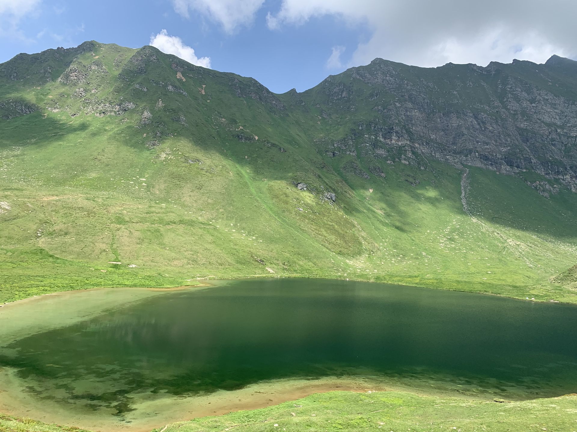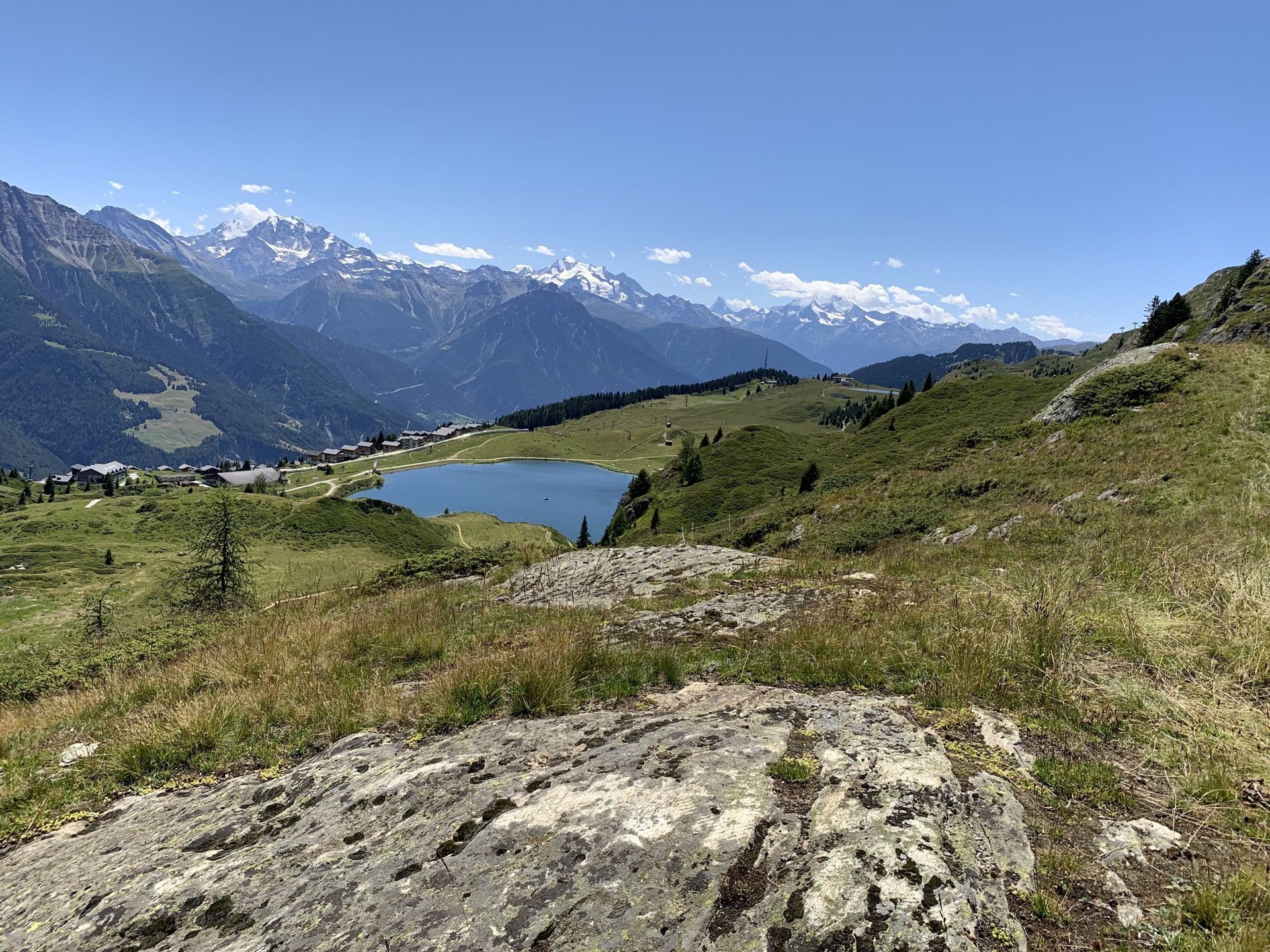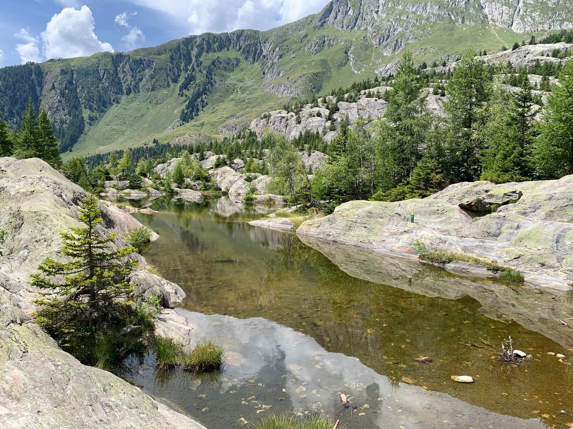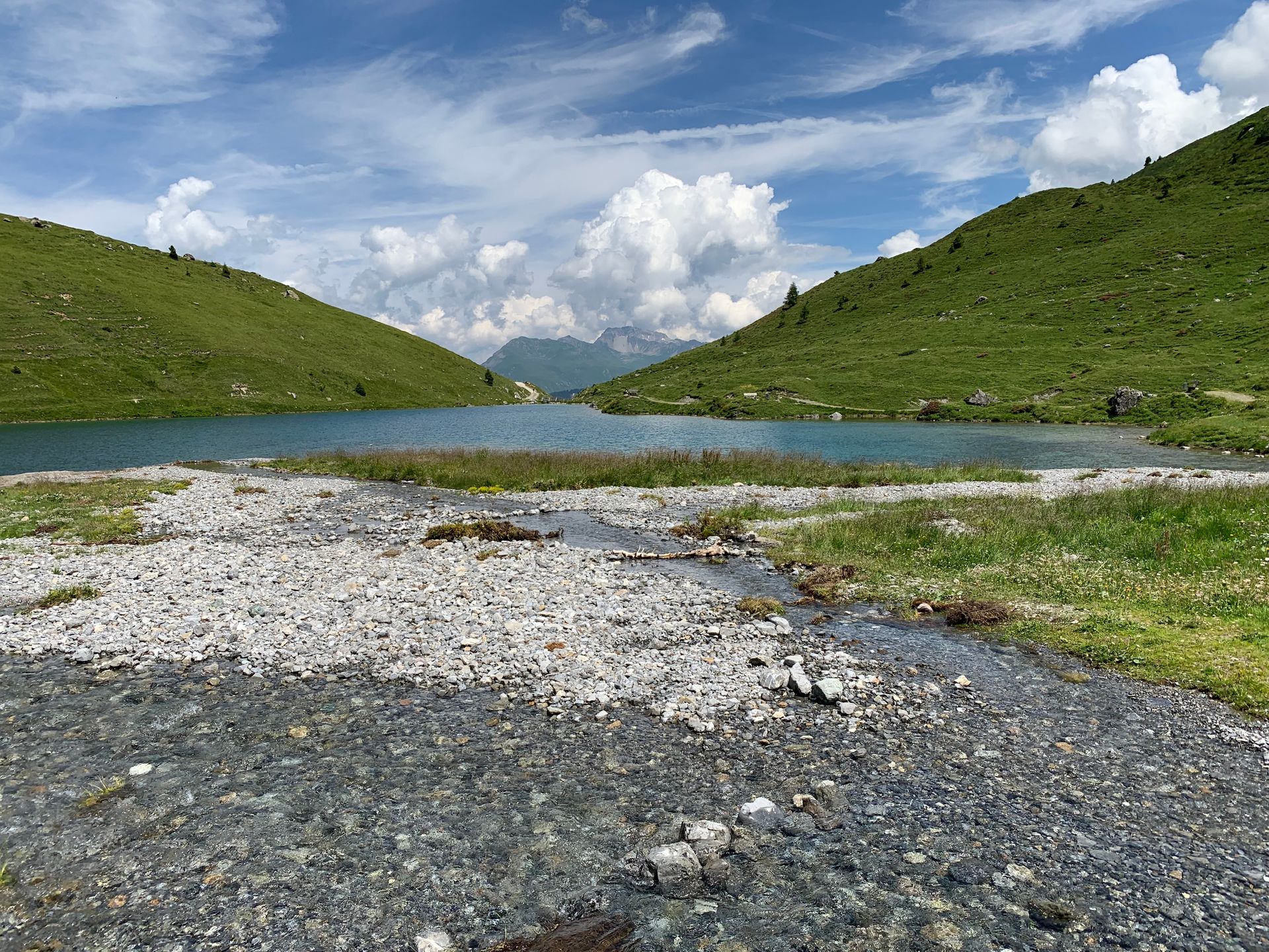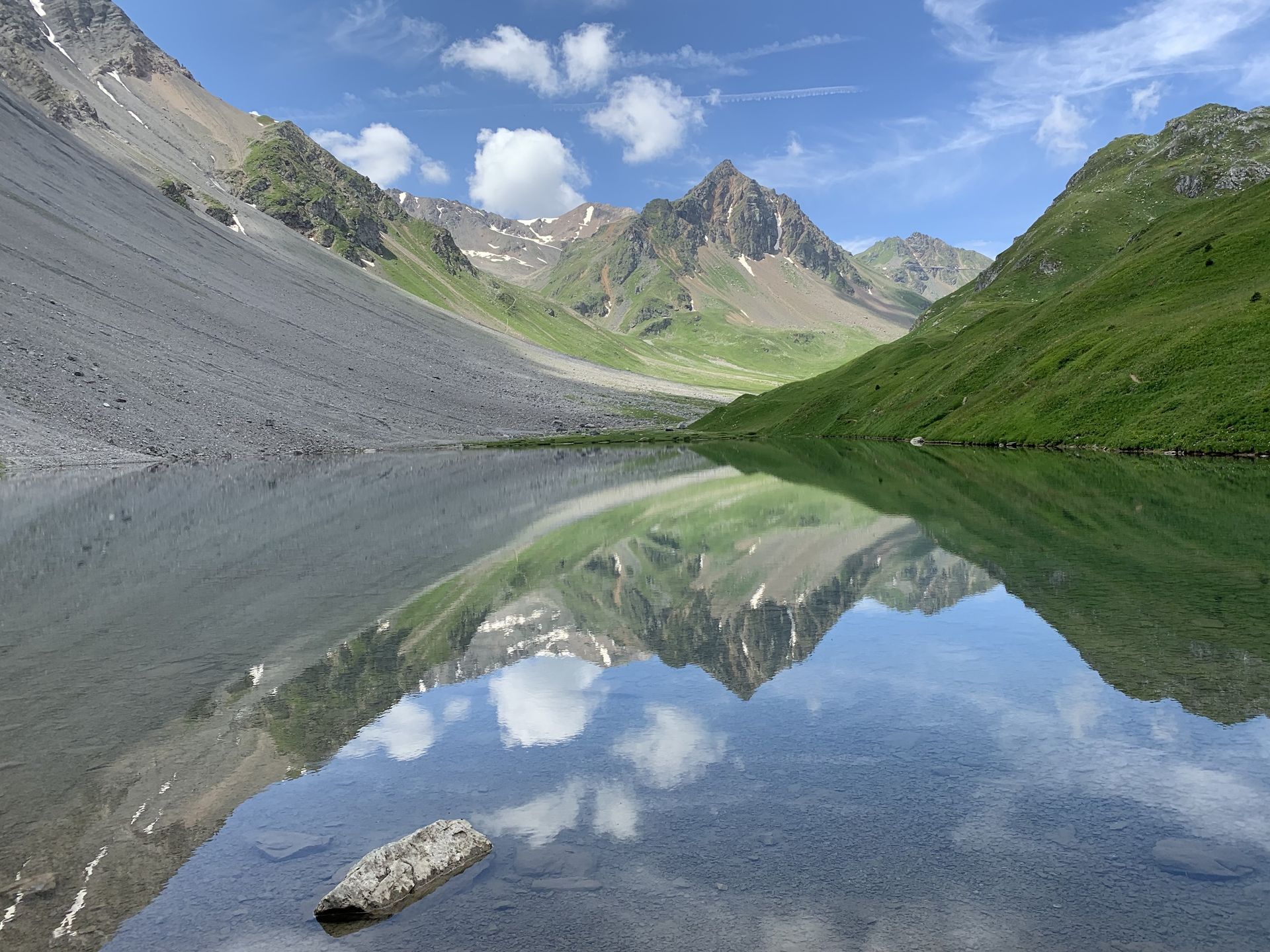Am letzten Tag begann und endete die Zwei-Seen-Wanderung bei der Hörnli Talstation und führte zu den kristallklaren Bergseen südwestlich von Innerarosa. Der Älplisee liegt auf 2155 Metern auf dem Aroser Älpli. Der See ist eingebettet im Quellbereich der Plessur, zwischen dem Schwellisee, den Bergen Erzhorn, Aroser Rothorn sowie Älplihorn. Der Schwellisee ist etwas tiefer auf der Aroser Alp an der jungen Plessur. Die Arvenstämme im See sind noch Zeugen des ausgedehnten Arvenwaldes, der einst weit über den Schwellisee hinauf reichte.