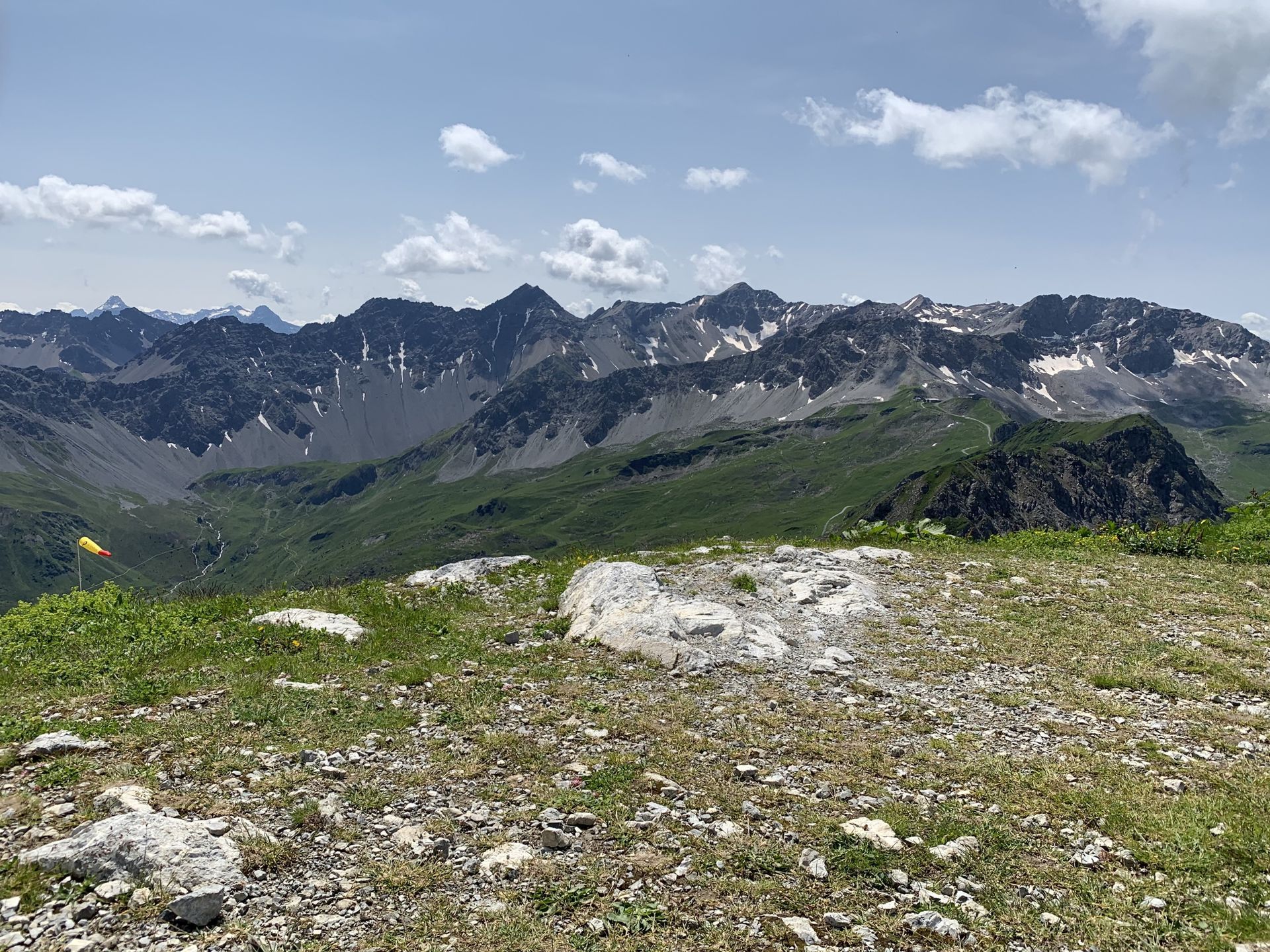 An der Postauto-Haltestelle Stels Mottis startete die aussichtsreiche Wanderung auf einer Bergstrasse Richtung Stelserberg. Nach etwa 200 Metern zweigte man links ab und erreichte über einen Wiesenpfad und durch lichte Tannenwälder via Stock das Berggasthaus am See. Dann ging es über schöne Riedwiesen und Alpweiden am Stelsersee vorbei und leicht ansteigend zum Sattel, wo es Richtung Alp Valpun eine Abzweigung gibt. Man folgte jedoch geradeaus dem Gratweg und erreichte nach einer Steilstufe ein Hochplateau mit herrlicher Aussicht auf beide Talseiten. Kurz nach Gafäll verzweigt der Weg mehrmals: links hinunter nach Valpun, gerade hoch über den Grat zum Gipfelziel oder rechts Richtung Alpbüel und das Dorf Pany. Der steile Gratanstieg von etwa 150 Höhenmetern führte zum Aussichtspunkt Chrüz auf 2195 Metern, mit einer traumhaften Rundsicht auf die Berge von St. Antönien und der Rätschenfluh. Dieser Gipfel wird auch liebevoll als Bündner Rigi bezeichnet.