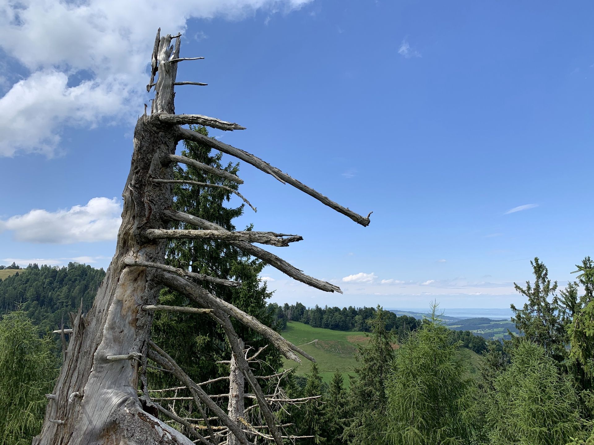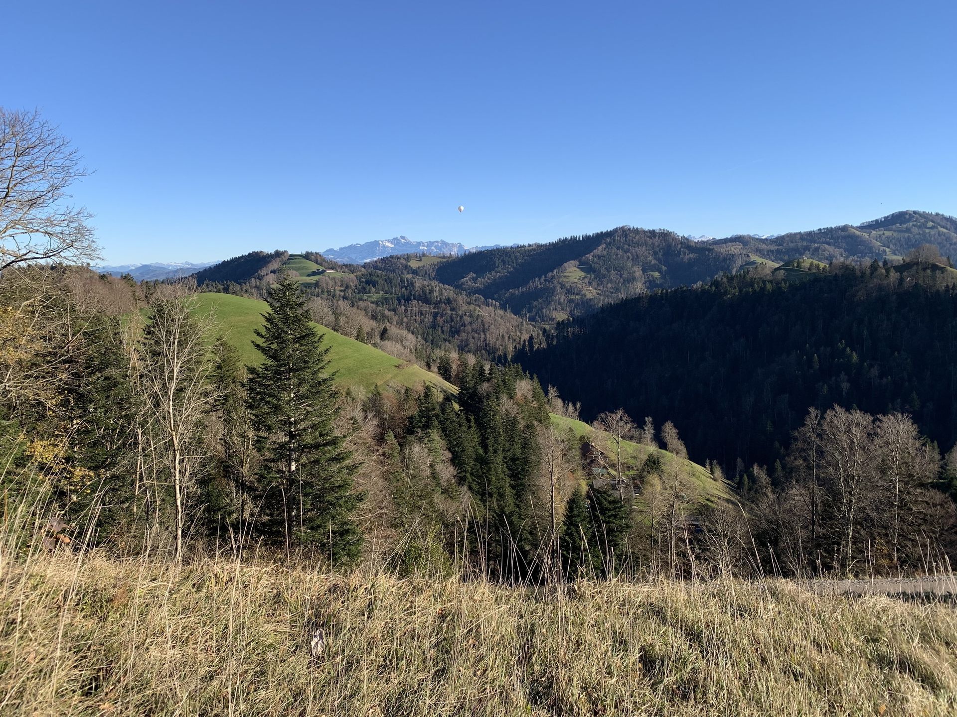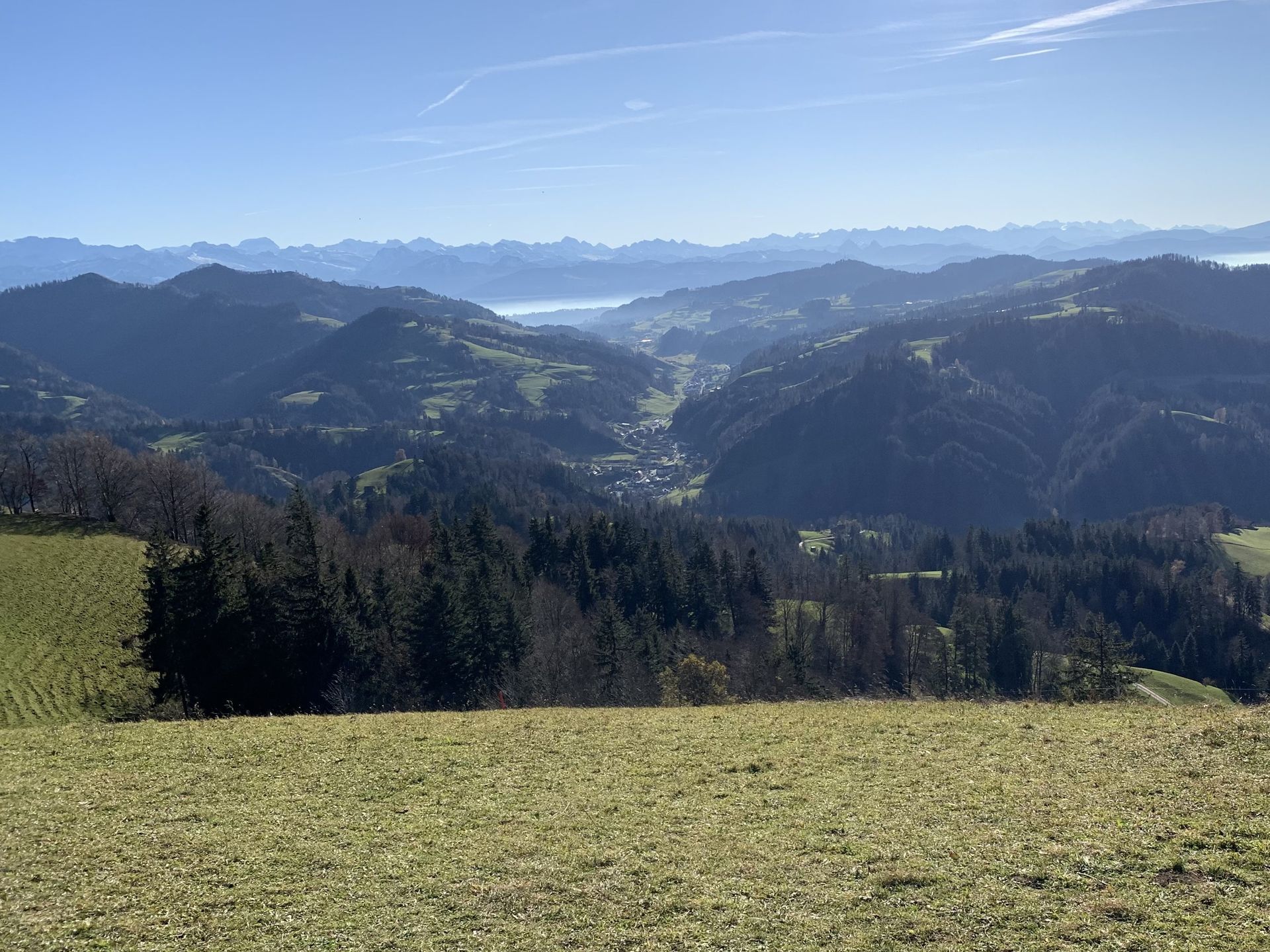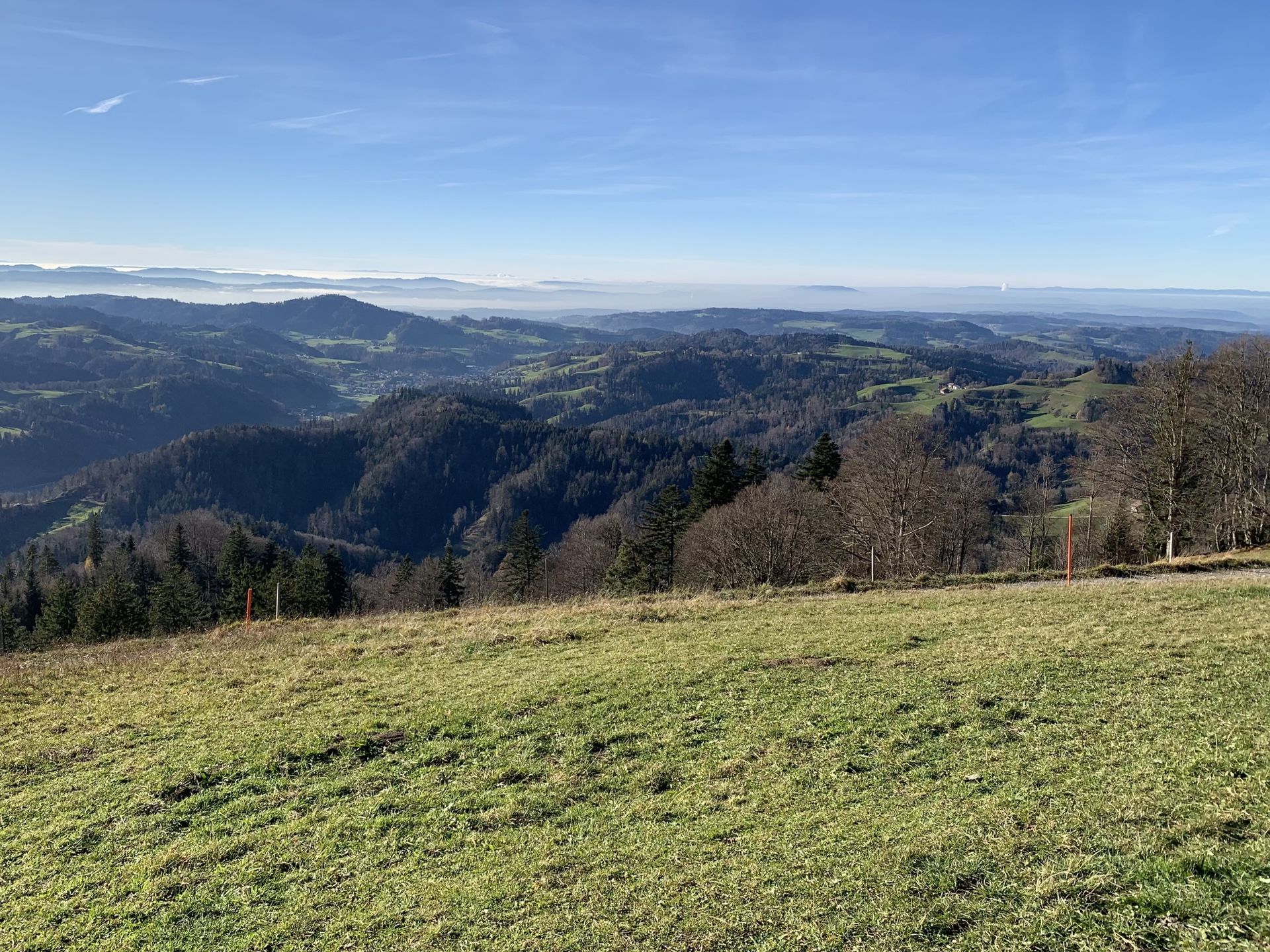 Bei herrlichem Sonnenschein startete die Panoramawanderung am Bahnhof und führte an der restaurierten Dampfbahnhalle vorbei. Dann ging es am rechten Tössufer flussaufwärts bis zur zweiten Brücke, die man überquerte. Der Einstieg in den Wald war ziemlich steil, aber schon bald liess die Steigung nach und man wanderte auf der Waldkrete bis „Heiletsegg“. Das letzte Teilstück zum 1133 Meter hohen Gipfel führte via Chlihörnli. Hier oben gab es eine prächtige Fernsicht über die umliegende Hügellandschaft und auf zahlreiche Bergspitzen, vom Säntis bis zum Pilatus und das Nebelmeer im Schweizer Mittelland. Im Berggasthaus Hörnli wählte man regionale Spezialitäten zum Mittagessen aus: Rindshackbraten, Kartoffelgratin und Gemüse, Älplermagronen mit Speckwürfel oder Basilikum und Gulaschsuppe. Der Abstieg erfolgte auf gut ausgebauten Wegen und über Wiesen- und Bergpfade via Tanzplatz zum Bahnhof Steg, wo es zurück ins Knonaueramt ging.