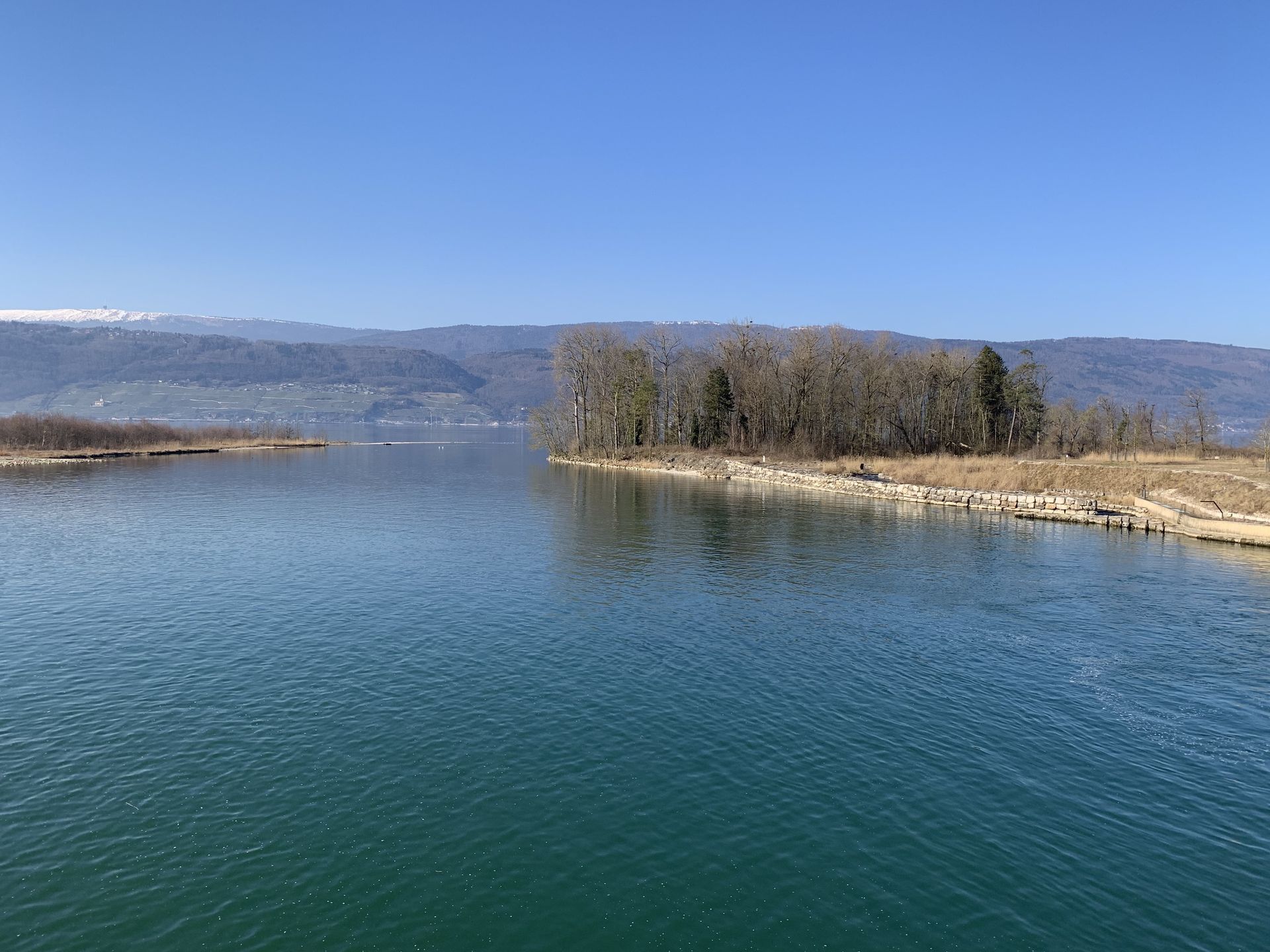 Die Wanderung von Erlach nach Nidau führte entlang des östlichen Ufers des wunderschönen Bielersees, teilweise direkt am Ufer oder etwas zurückversetzt. Kurz nach dem Start ging es über den Bergrücken der Hofmannsflue. Auf- und Abstiege waren mit je 150 Metern gering, aber mit zwanzig Kilometern Länge ergab sich eine Wanderzeit von etwa fünf Stunden. Eine schöne Überraschung gab es beim Delta der Aare. Seit 1878 fliesst der Grossteil des Aarewassers über den Hagneck-Kanal in den Bielersee und ein Flusskraftwerk gab es auch. Bei der Erneuerung 2015 wurde viel für die Natur getan. Durch einen aufwendig gestalteten Bachlauf können Fische frei passieren. Zudem wurde der Unterlauf der Aare renaturiert, wo eine rund 20 000 Quadratmeter grosse Auenlandschaft entstand. Auch der Hagneck-Kanal flussaufwärts wurde in den letzten Jahren mit Buchten, Kleinstrukturen wie Wurzelstöcken, Hecken und Trockenwiesen renaturiert.