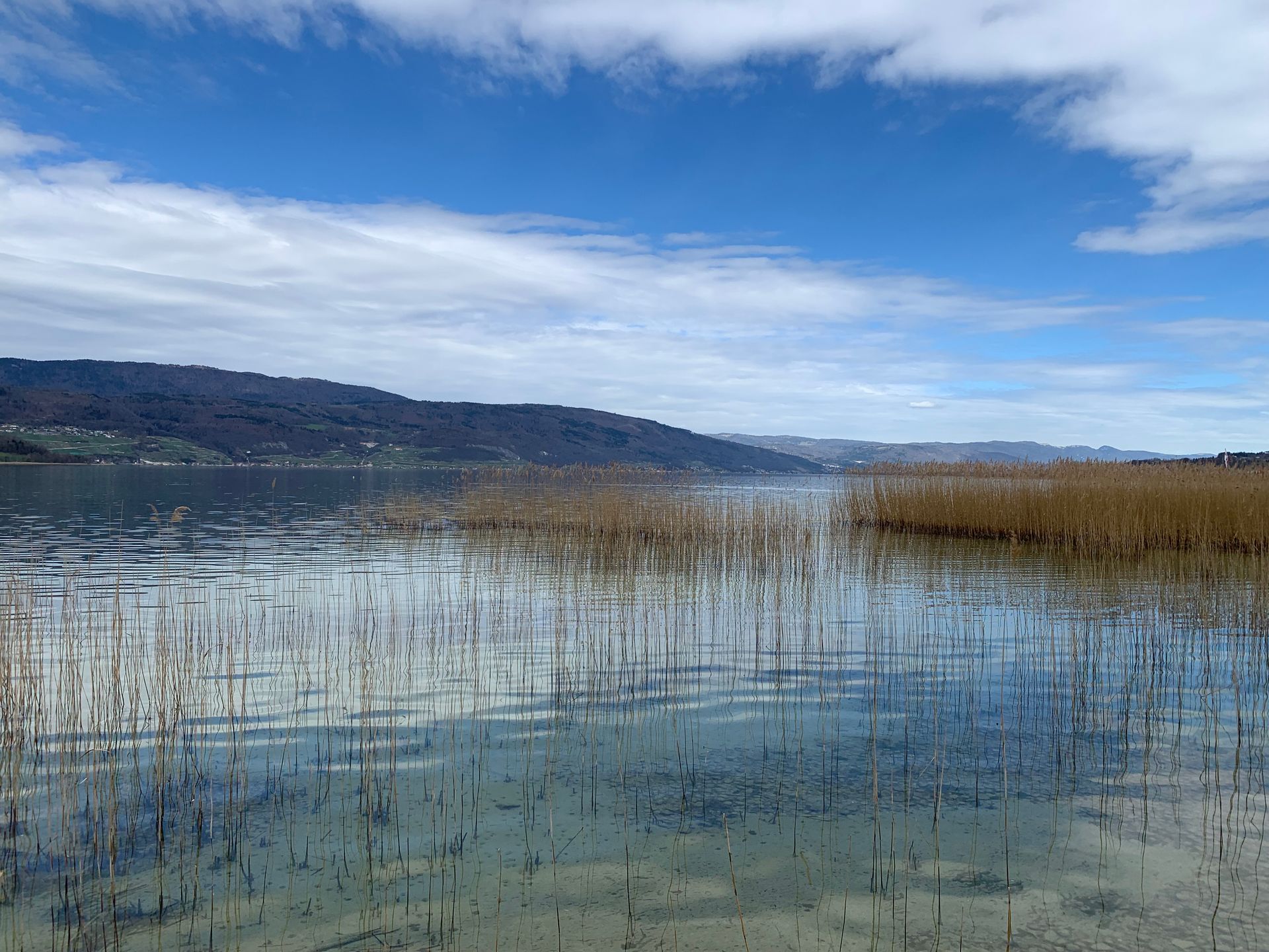 Auf dieser Route gab es mehrere schöne Orte zum Picknicken. Die Mittagspause machte man in Lüscherz direkt am Seeufer. Besonders schön war es in der Mörigenbucht mit ihren ausgedehnten Schilfbeständen. Hier konnte man nochmals eine Pause machen, Sonne geniessen und sich auf einen farbigen Frühling freuen.