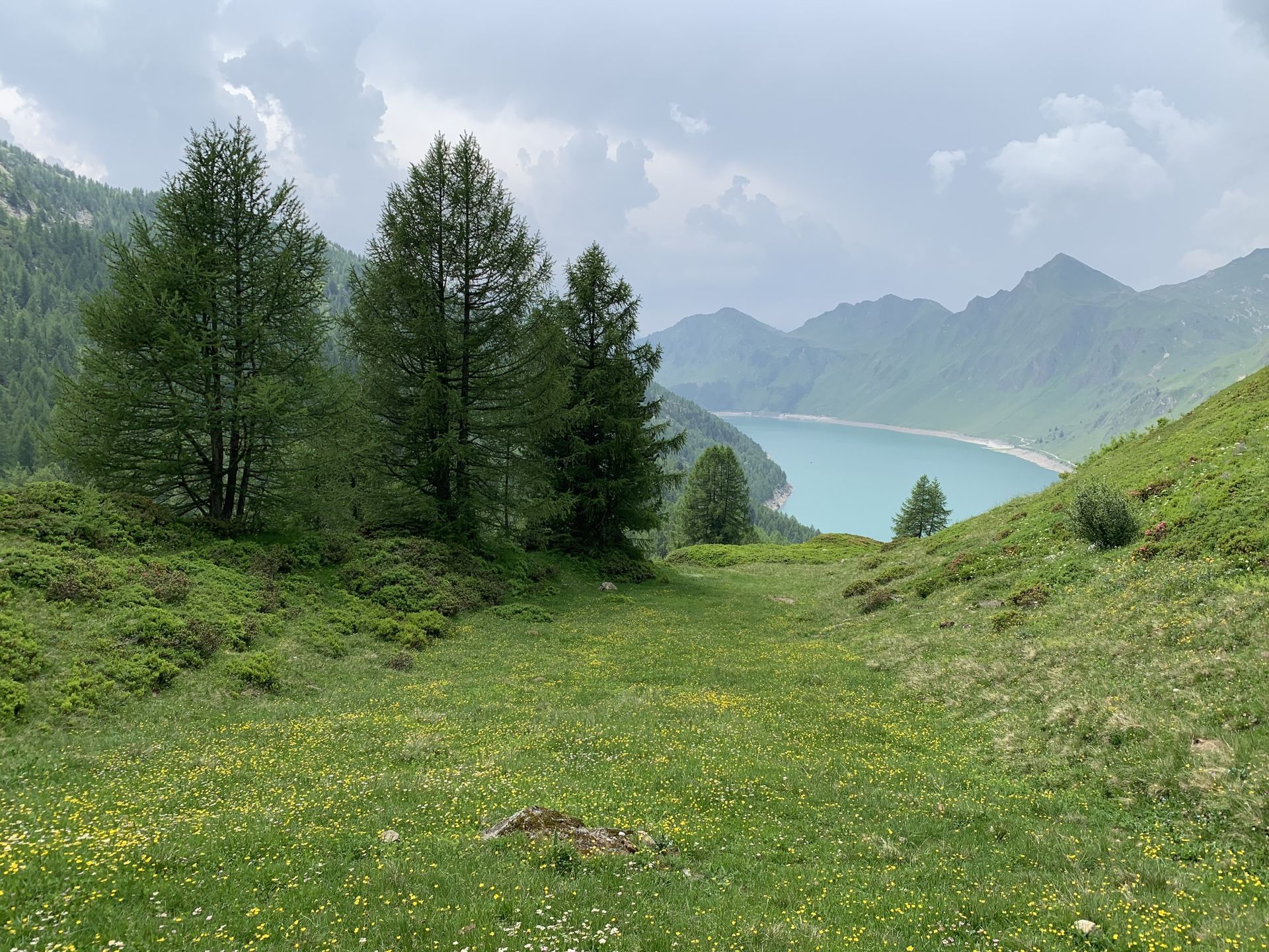 Nun ging es einige Meter bergauf zum nächsten Bergkamm, wo man den dritten See der Wanderung entdeckte: den Cadagnosee. Der Abstieg zum Lago di Cadagno war kurz und führte an der Alpe Piora vorbei. Hier befindet sich eine Käserei, eine Rohschinken-Trocknerei und das Alpine Biologie-Zentrum. Der Cadagnosee ist bei Forschern weltberühmt, weil er aus drei Schichten besteht, die sich nicht mischen. In der SAC-Hütte Cadagno kehrte man ein und gestärkt ging es wieder auf den Rückweg Richtung Ritomsee. Der Weg führte zuerst noch etwas weiter bergwärts der Schlucht Murinascia Grande entlang. Dann ging es über Wiesen und durch Wald mit Lärchen und Zirbelkiefern zum Ritomsee hinunter und weiter bis zur Bergstation der Ritom-Bahn.