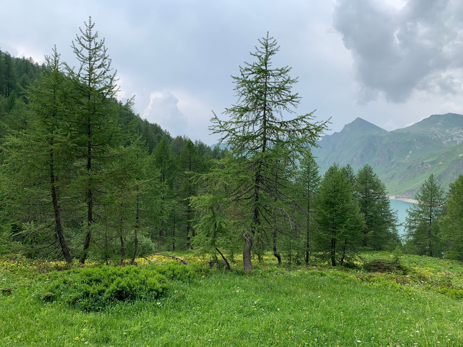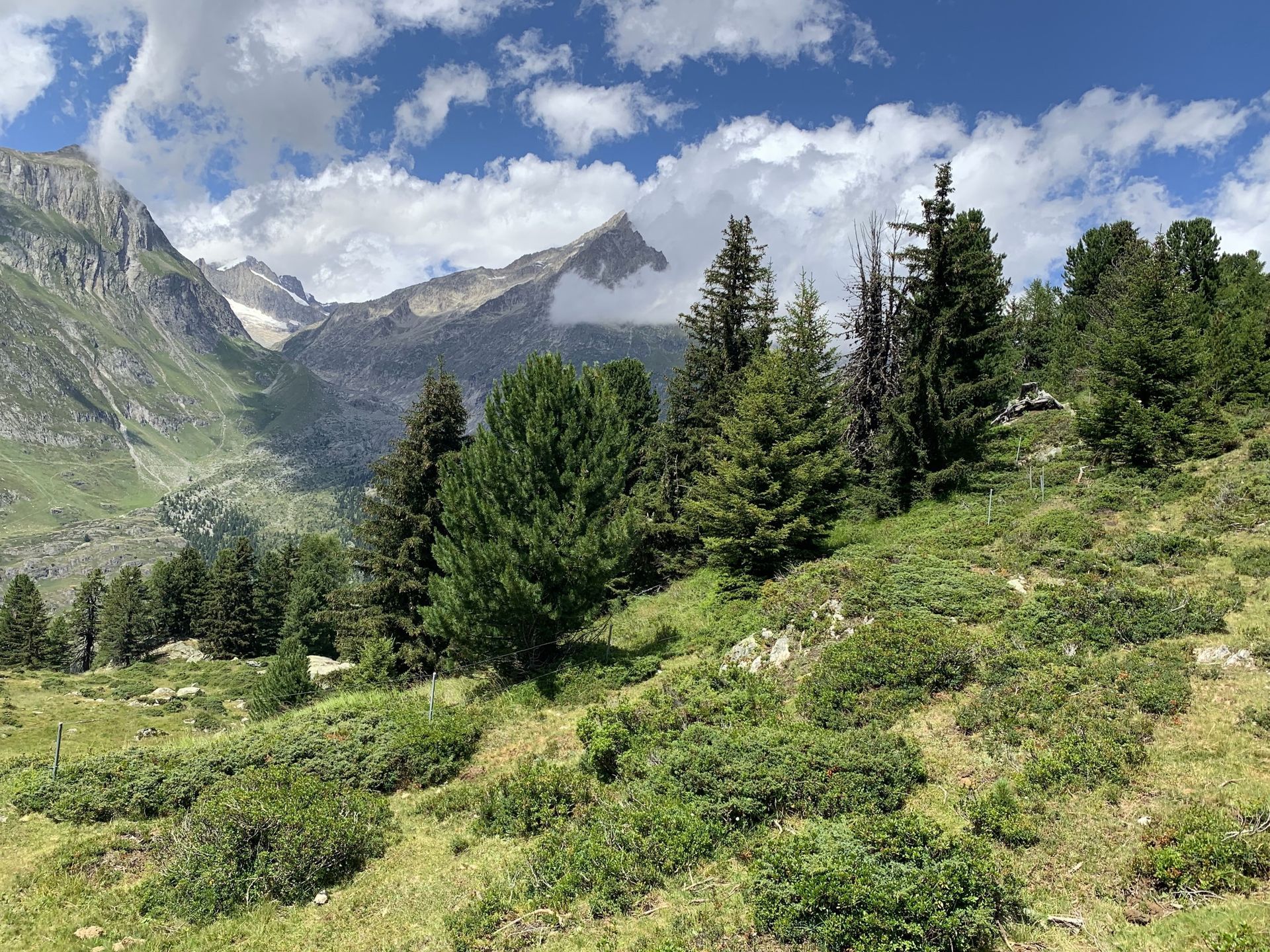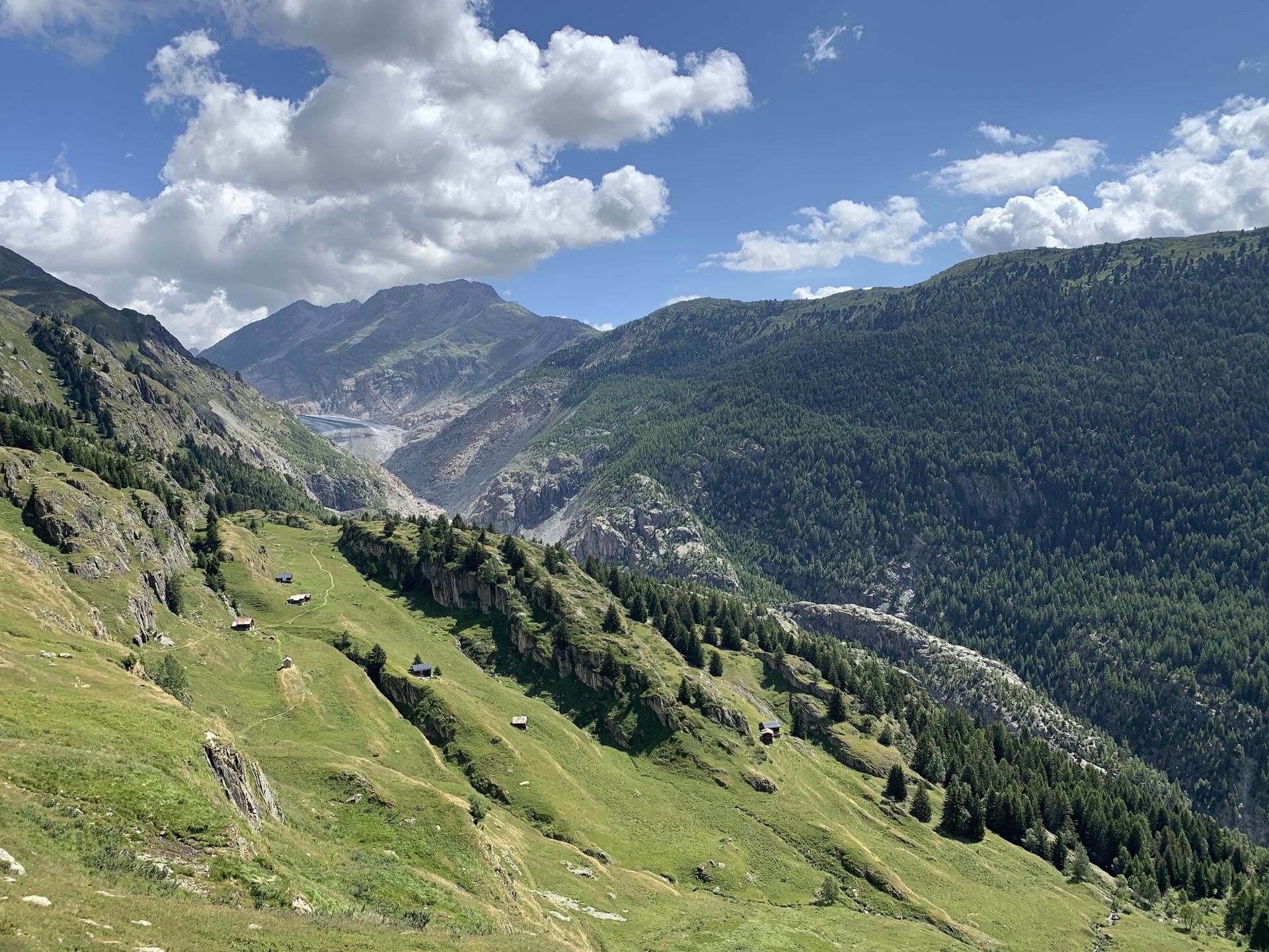 Vom kleinen Walliser Dorf Lax an der Furka-Bahnlinie ging es zuerst über bewässerte Wiesen hinauf bis zum Altbach. Nun blieb die Höhe praktisch konstant und der Weg führte gemütlich über dem Tal Richtung Fieschertal. Stellenweise wanderte man direkt der Fiescher- und Lagerwyssa entlang. Das sind zwei Suonen, die während Jahrhunderten Wasser aus dem Fieschertal auf die Wiesen von Lax und Fiesch geführt haben. Mächtige Fichten und Lärchen säumten den schattigen Weg und immer wieder gab es schöne Ausblicke auf die Dörfer Ernen und Fiesch oder Wiesen mit weidenden Schwarznasenschafen.