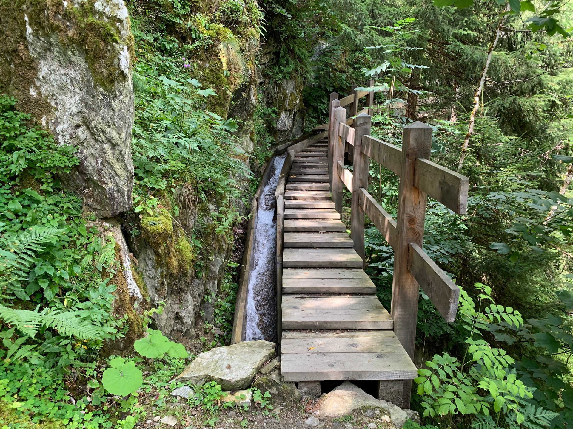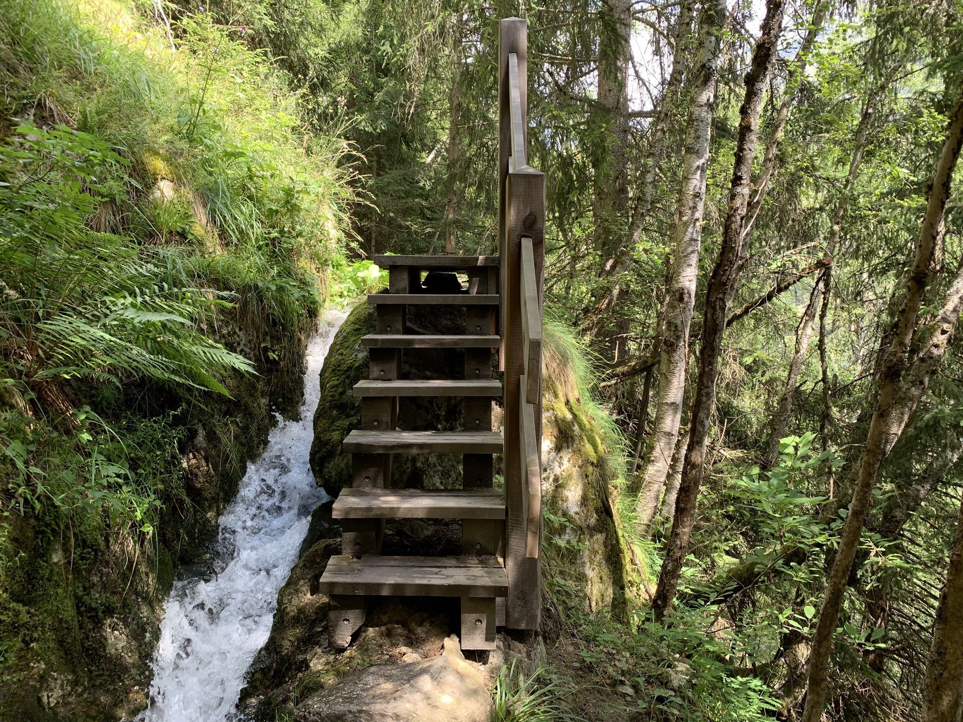 Vom Hotel Alpensonne ging es zuerst bergab und durch den Wald am Welschtobelbach entlang. Nun folgte ein etwas steiler Aufstieg bis zu den eindrücklichen Alteiner Wasserfällen am Schiesshorn, eine der schönsten Hausberge von Arosa.
