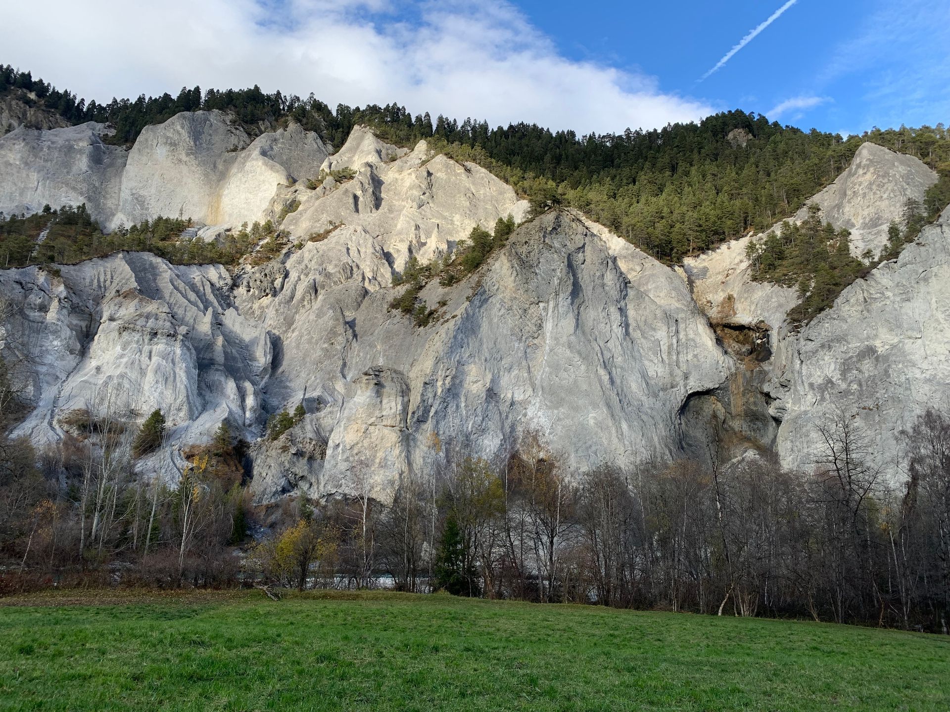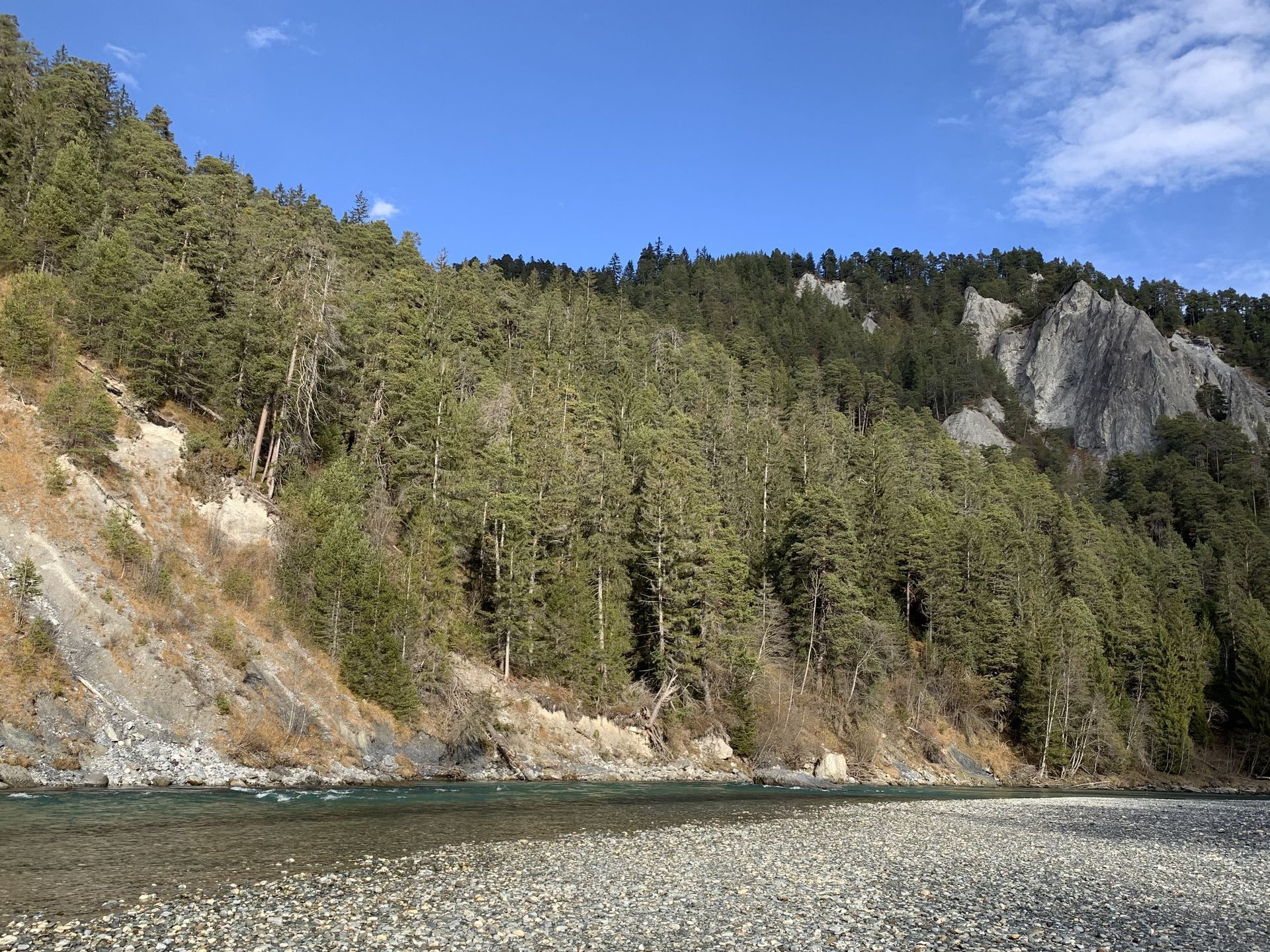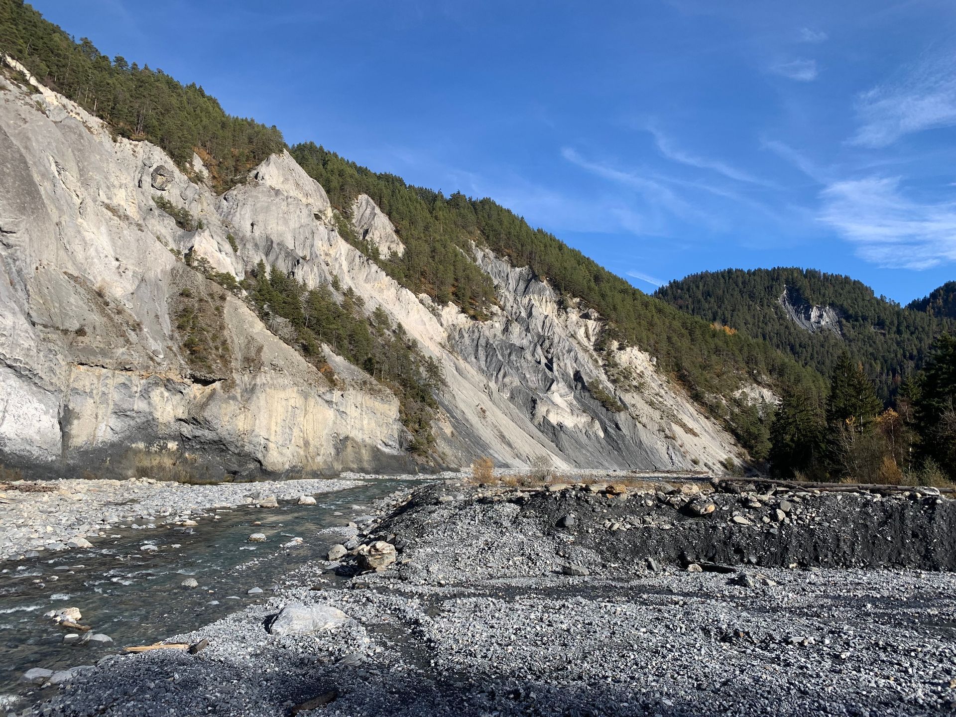 Vor etwa 10 000 Jahren wurde das Tal durch den Flimser Bergsturz verschüttet. Der Rhein hat dann nach und nach die Rheinschlucht – auf romanisch „Ruinaulta“ aus dem Kalkstein ausgespült und es entstanden eindrückliche Felsformationen und wilde Flusslandschaften. Die Rheinschlucht ist auch als „Grand Cayon“ der Schweiz bekannt und bietet einen einzigartigen Einblick in die Flora und Fauna sowie Geologie des historischen Bergsturzes. Stark gefährdete Vogelarten des Flussregenpfeifers oder Flussuferläufers finden hier einen neuen Lebensraum. An den Hängen gedeihen die ökologisch wertvollen Erika-Föhrenwälder. Besonders attraktiv ist diese Waldgesellschaft im Frühsommer dank seinem Reichtum an Orchideen wie der seltene Frauenschuh.